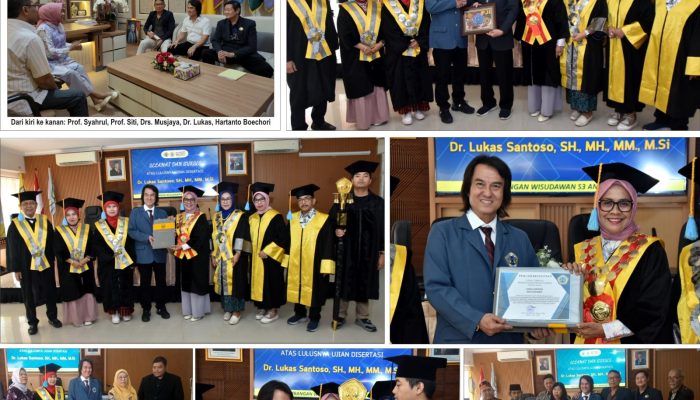Info-Sultra.com | Surabaya.- Anggota Depkumham PJI (Departemen Hukum dan HAM Persatuan Jurnalis Indonesia), Lukas Santoso, S.H., M.H., M.M., M.Si., yang juga advokat senior, raih gelar Doktor Manajemen dari Fakultas Ekonomi dan Bisnis Universitas Dr. Soetomo (Unitomo) Surabaya dalam sidang terbuka di Gedung Pascasarjana pada Kamis, 13 Maret 2025. Lukas lulus dengan indeks prestasi kumulatif (IPK) 3,82. Jadi sekarang resmi disandang gelarnya, Dr. Lukas Santoso, S.H., M.H., M.M., M.Si. Tampak hadir di acara, beberapa Tokoh Organisasi Pers, organisasi Advokat dan Organisasi massa serta puluhan pendukung Dr. Lukas.