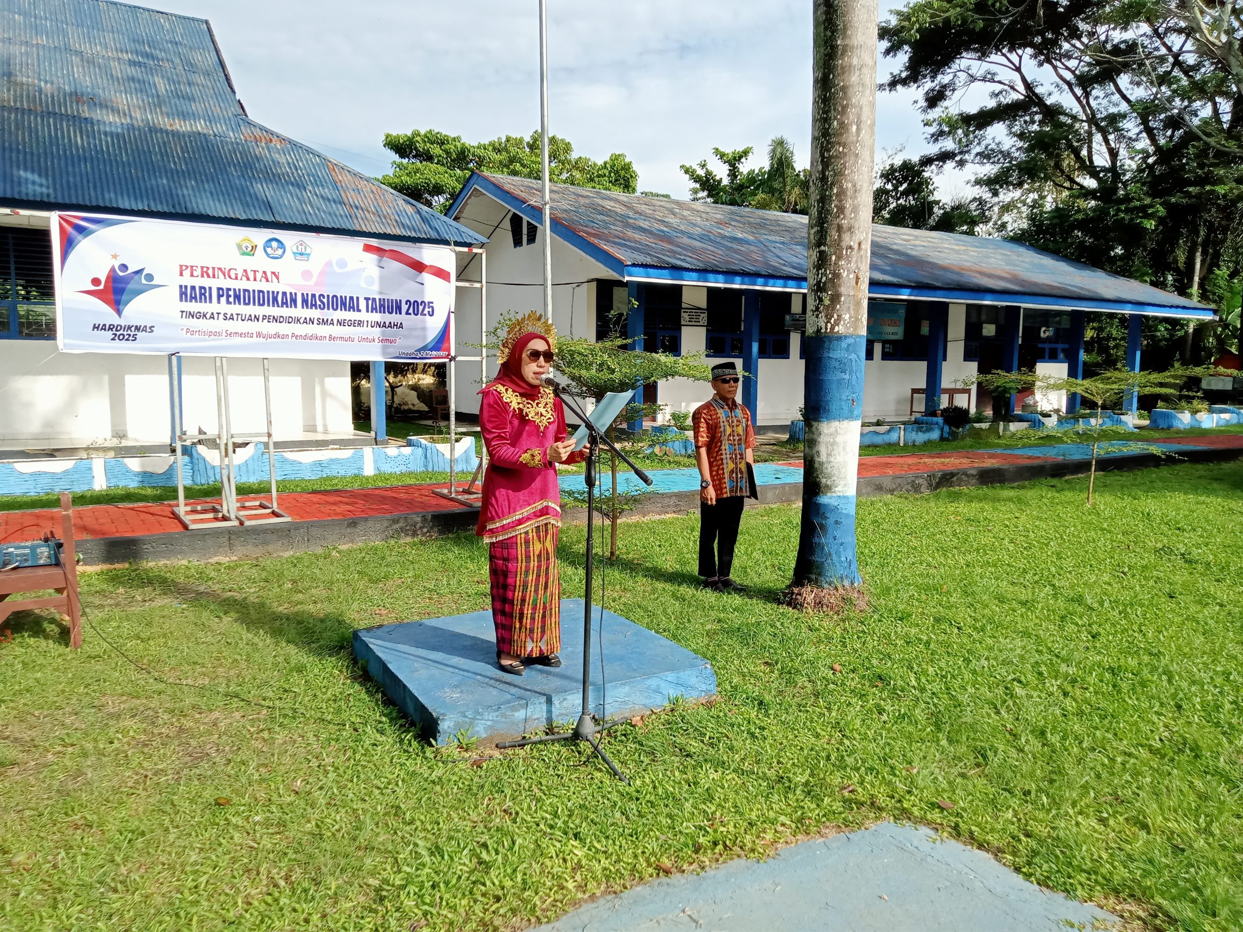 Mengusung tema Partisipasi Semesta Wujudkan Pendidikan Bermutu Untuk Semua, Upacara Hardiknas tersebut dipimpin langsung oleh Kepala SMAN 1 Unaaha, Ridawati Spd, MM, yang bertindak sebagai pembina upacara. Dalam sambutannya, Ridawati membacakan pidato Menteri Pendidikan, mengajak seluruh elemen bangsa untuk meneguhkan semangat dalam mencerdaskan kehidupan bangsa.