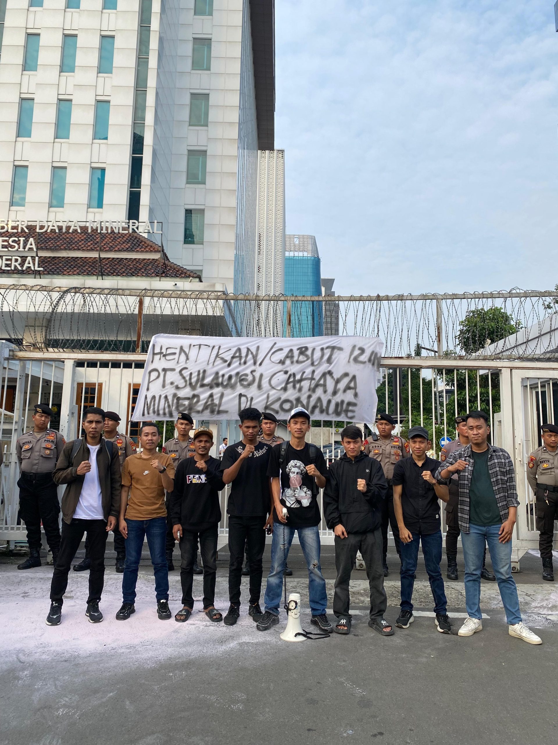 Para demonstran menyuarakan sejumlah tuntutan, salah satunya adalah mendesak Kementerian ESDM untuk mengevaluasi dan mencabut izin operasi tambang nikel milik PT. Sulawesi Cahaya Mineral (SCM), anak perusahaan dari PT. Merdeka Battery Materials Tbk, yang beroperasi di Kecamatan Routa, Kabupaten Konawe, Sulawesi Tenggara.