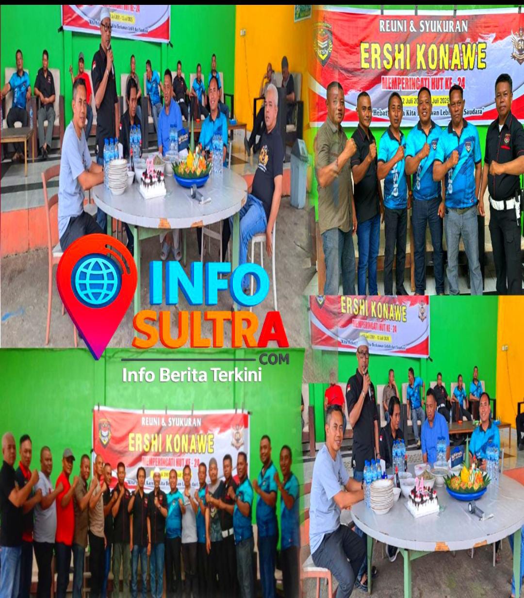 Info-Sultra.com | Konawe, — Komunitas Ershi Polres Konawe, yang merupakan wadah silaturahmi para anggota Polri lulusan angkatan 20 (Ershi), menggelar acara Reuni dan Syukuran dalam rangka memperingati Hari Ulang Tahun (HUT) ke-24, yang jatuh pada hari ini, Sabtu 12 Juli 2025, menandai perjalanan pengabdian selama 24 tahun sejak berdirinya angkatan pada 12 Juli 2001.