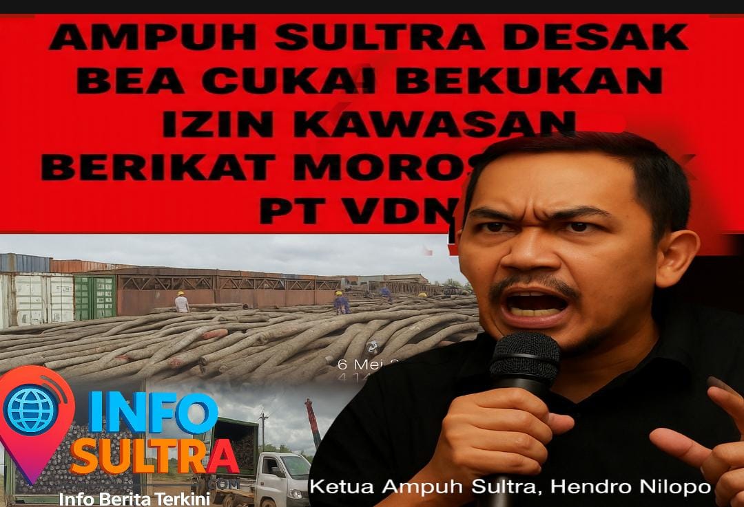 Info-Sultra.com | Kendari, 15 Juli 2025 — Aliansi Masyarakat Peduli Hukum (Ampuh) Sulawesi Tenggara mendesak Kantor Pengawasan dan Pelayanan Bea dan Cukai (KPPBC) Tipe Madya Pabean C Kendari untuk segera membekukan status dan izin Kawasan Berikat Morosi yang dikelola oleh PT Virtu Dragon Nickel Industry (VDNI).