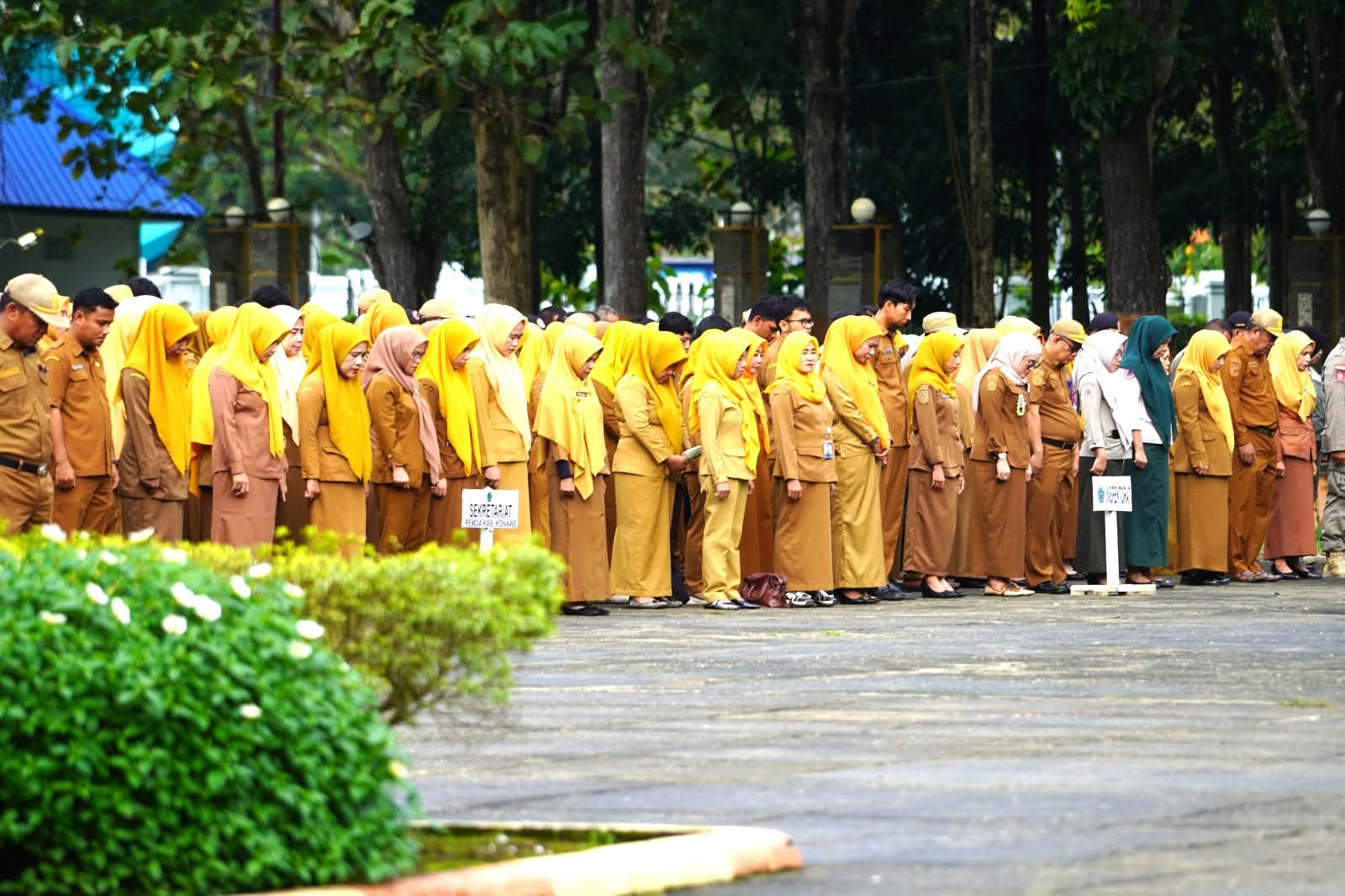 Dalam upacara tersebut, Bupati membacakan sambutan resmi dari Menteri Koperasi dan UKM RI yang menekankan pentingnya memperkuat semangat intelektual gotong royong, inklusivitas, dan kedaulatan ekonomi sebagai fondasi gerakan koperasi.