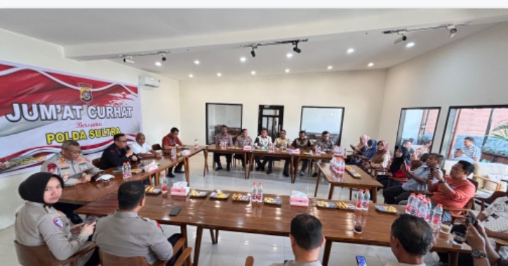 Info-Sultra.com | Kendari – Polda Sulawesi Tenggara menggelar kegiatan Jumat Curhat bersama warga di Cafe Caarywan02, Jalan Sisingamangaraja, Kelurahan Wundubatu, Kecamatan Poasia, Kota Kendari, Jumat (8/8/2025).