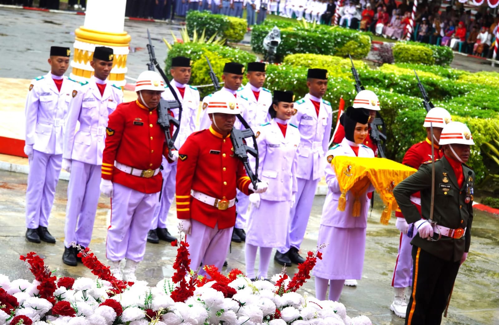 Bupati Konawe H.Yusran Akbar ST, tampil sebagai Inspektur Upacara berlangsung khidmat dengan dihadiri Sekda Konawe, Ketua DPR Konawe serta Jajaran Anggota DPR , jajaran Forum Koordinasi Pimpinan Daerah (Forkopimda), pimpinan Organisasi Perangkat Daerah (OPD), ASN, TNI-Polri, Lurah Se-Kab.Konawe, Kepala Desa Se-Kab.Konawe, Pelajar, serta perwakilan masyarakat dari berbagai kecamatan.