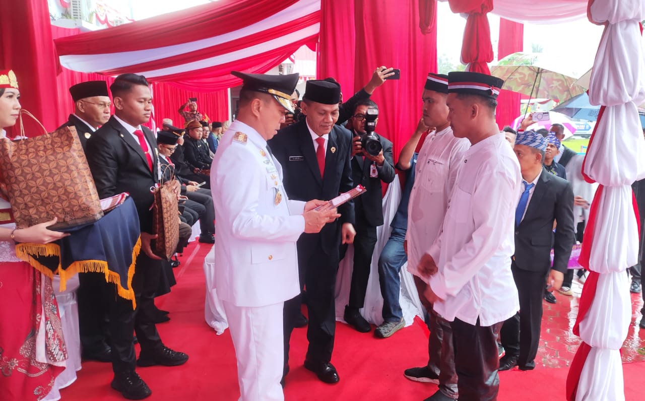 Gubernur Sulawesi Tenggara, Mayjen TNI (Purn) Andi Sumangerukka, S.E., M.M., bertindak sebagai inspektur upacara sekaligus menyerahkan secara simbolis SK Remisi dari Menteri Imigrasi dan Pemasyarakatan kepada Kepala Kanwil Ditjenpas Sultra, Sulardi.