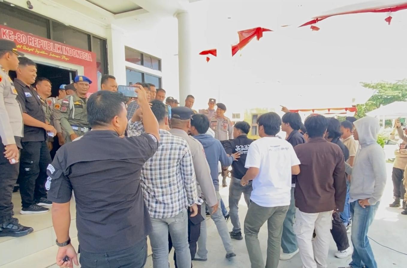 Setibanya di Kantor DPRD, massa sempat kecewa karena tidak dapat bertemu langsung dengan Ketua DPRD. Ketidakhadiran unsur pimpinan tersebut membuat situasi memanas, hingga terjadi aksi saling dorong antara massa dan pihak keamanan. Namun, ketegangan berhasil diredam.