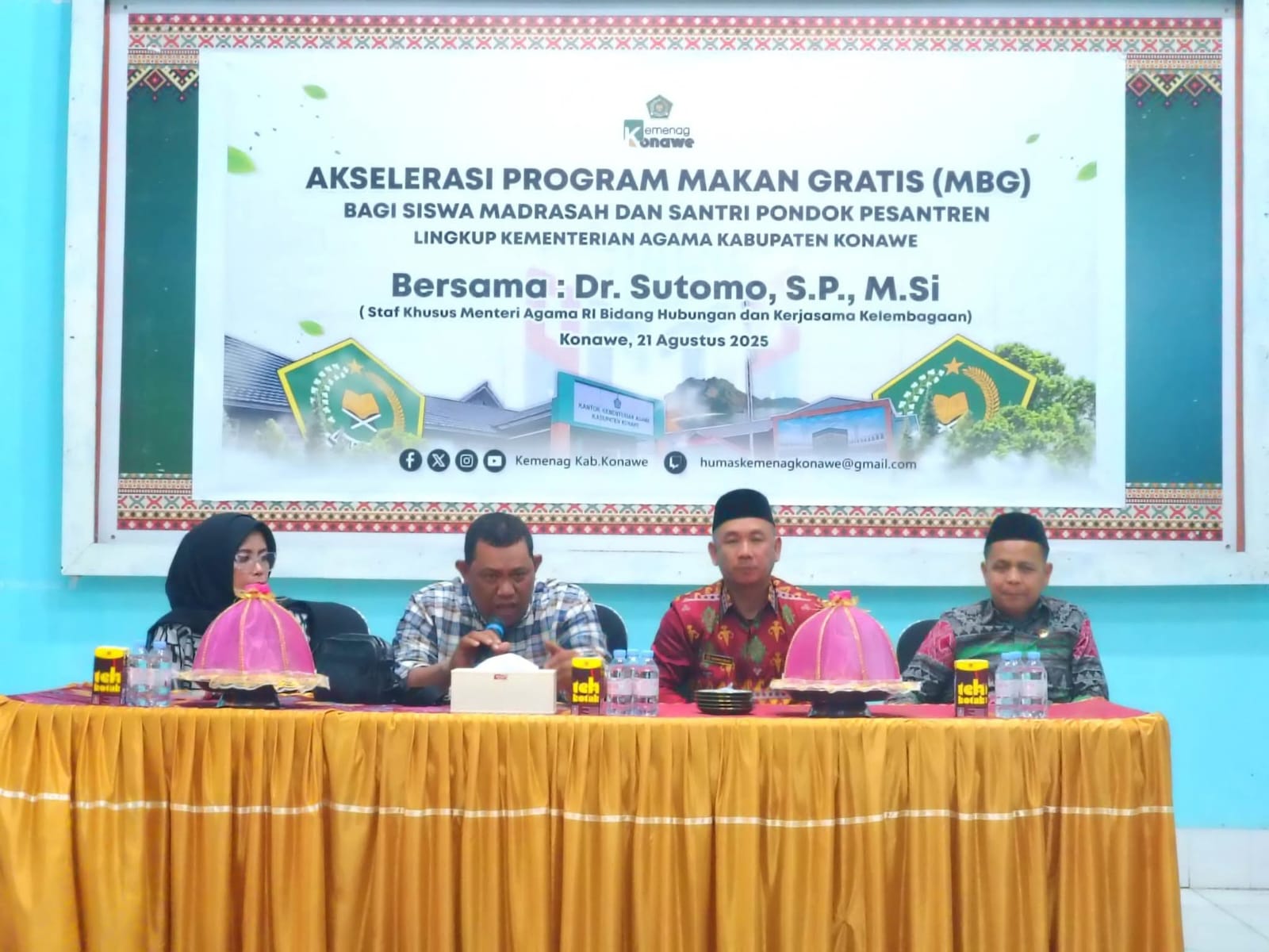 Ia juga mengapresiasi dukungan Pemerintah Kabupaten Konawe yang aktif memfasilitasi dan berkolaborasi dengan Kementerian Agama dalam mendukung MBG.