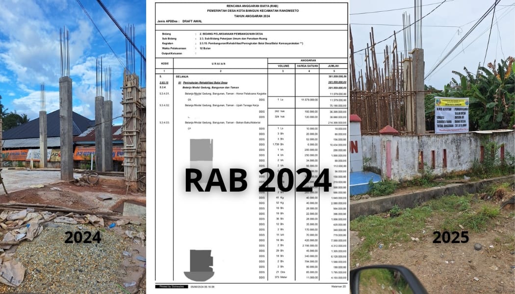 Berdasarkan hasil investigasi dilapangan diduga kuat terdapat indikasi kerugian negara dari pengelolaan dana desa pada Tahun 2024 di Desa Kota Bangun, Kecamatan Ranomeeto, Kabupaten Konawe Selatan.