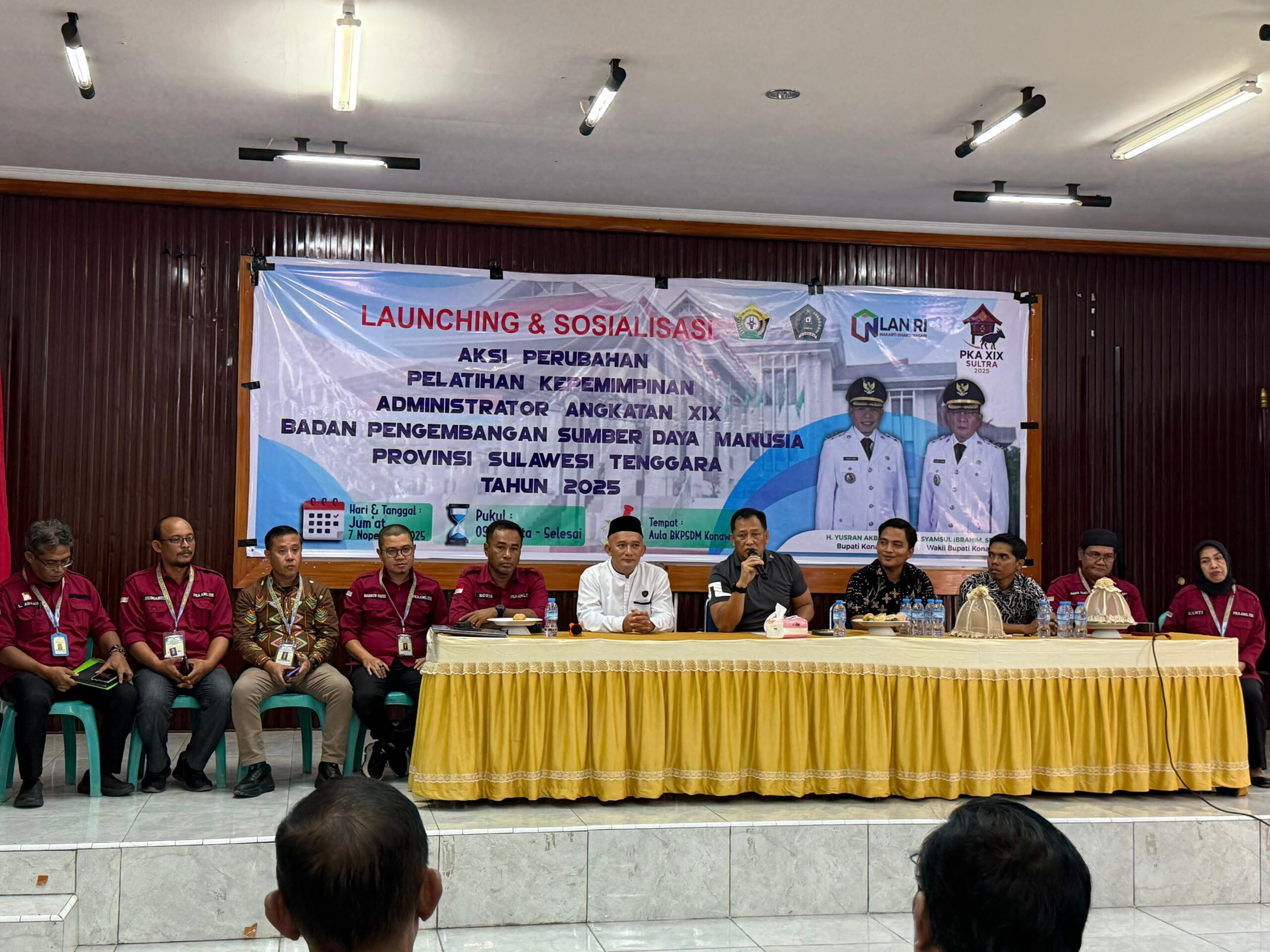 Info-Sultra.com | Konawe – Pemerintah Kabupaten Konawe resmi meluncurkan tujuh program inovasi hasil rancangan peserta Pelatihan Kepemimpinan Administrator (PKA) Angkatan XIX Tahun 2025. Kegiatan yang berlangsung di Aula Kantor Bupati Konawe, Jumat, 7 November 2025, dibuka oleh Sekretaris Daerah Kabupaten Konawe, Ferdinand Sapan, dan dihadiri para pejabat Organisasi Perangkat Daerah (OPD) se-Kabupaten Konawe.