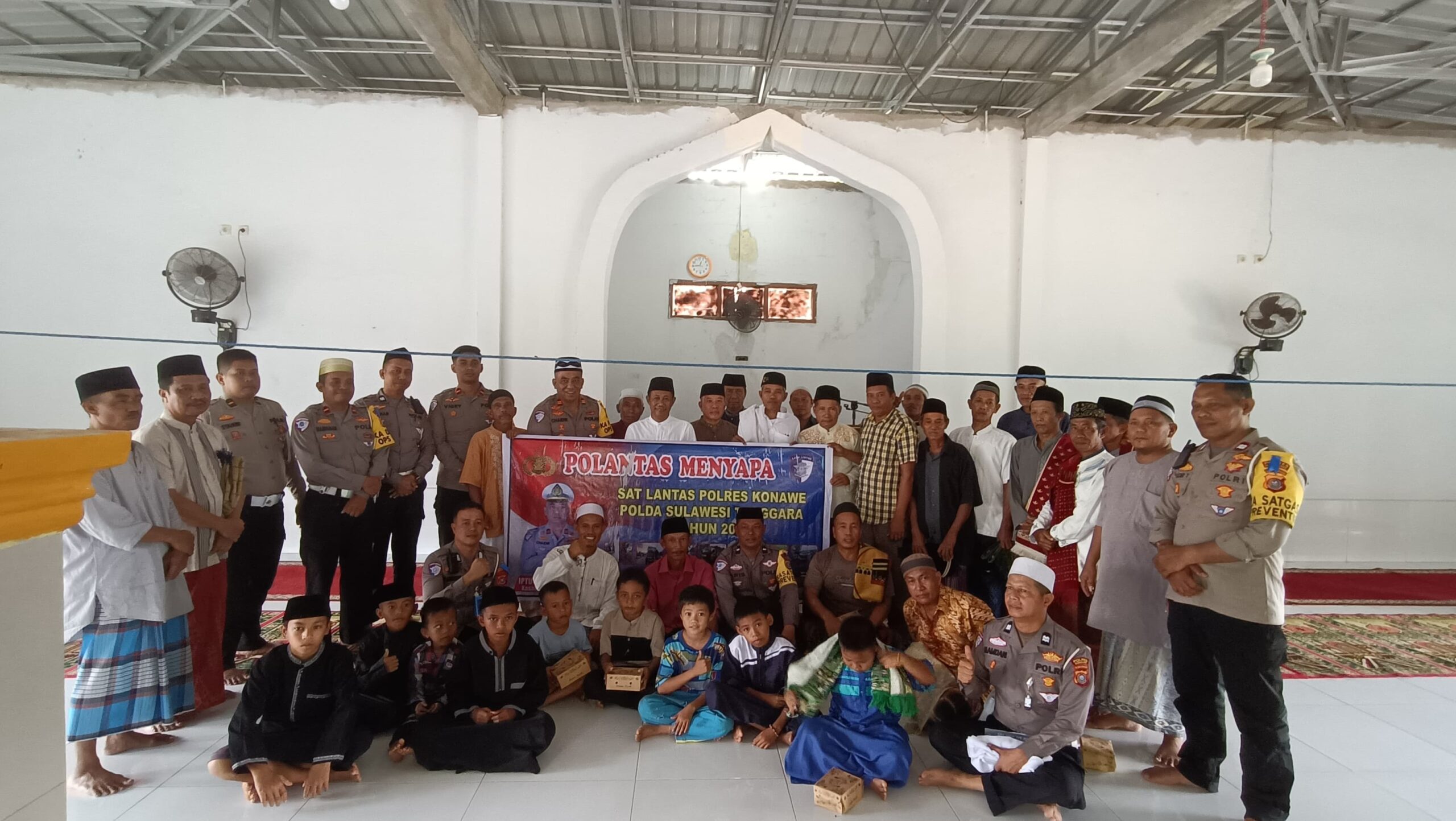INFO-SULTRA.COM, KONAWE – Satuan Lalu Lintas (Satlantas) Polres Konawe kembali menggelar kegiatan Jumat Berkah di Masjid Akbar, Desa Wawolemo, Kecamatan Pondidaha, Jumat (21/11/2025). Kegiatan yang dipimpin langsung oleh Kepala Satuan Lalu Lintas (Kasatlantas) Polres Konawe, IPTU Chaidir Akbar, S.IP., ini menjadi bagian dari komitmen Polri dalam memperkuat hubungan humanis dengan masyarakat melalui aksi sosial dan edukasi keselamatan berlalu lintas.