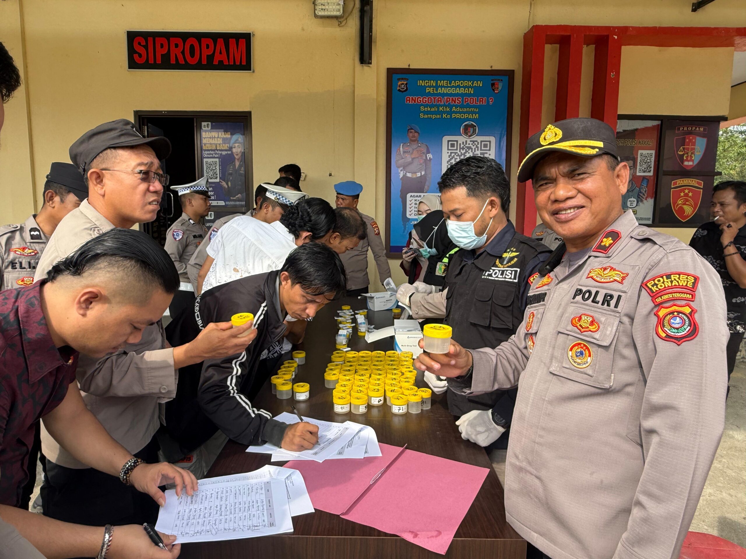 INFO-SULTRA.COM, KONAWE – Dalam upaya memperkuat integritas dan menjaga kepercayaan masyarakat, Polres Konawe menggelar pemeriksaan urine mendadak dan spontanitas tanpa pemberitahuan terlebih dahulu terhadap seluruh personel pada Jumat, 28 November 2025 di Mako Polres Konawe, Kelurahan Inolobunggadue, Kecamatan Unaaha.