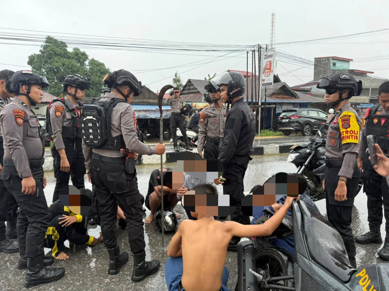 INFO-SULTRA.COM, KENDARI – Tim Patroli Perintis Presisi Direktorat Samapta (Ditsamapta) Polda Sulawesi Tenggara (Sultra) berhasil menggagalkan rencana penyerangan antar sekolah setelah terlibat aksi kejar-kejaran dramatis di tengah hujan pada Kamis (4/12/2025). Empat orang pelajar diamankan karena kedapatan konvoi sambil membawa senjata tajam (sajam) jenis celurit.