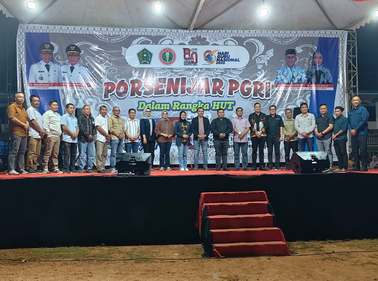INFO-SULTRA.COM, KONAWE – Riuh semangat persaudaraan dan kreativitas pendidik mewarnai penutupan rangkaian Hari Ulang Tahun ke-80 Persatuan Guru Republik Indonesia (PGRI) yang dirangkaikan dengan Hari Guru Nasional (HGN) Tahun 2025 tingkat Kabupaten Konawe. Kegiatan Pekan Olahraga, Seni, dan Pembelajaran (PORSENIJAR) tersebut resmi ditutup oleh Bupati Konawe, H. Yusran Akbar, ST, di Lapangan Sepak Bola Mbanahi, Kecamatan Puriala, Selasa malam (23/12/2025).