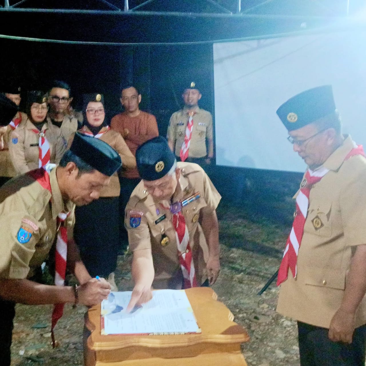 INFO-SULTRA.COM, KONAWE – Gerakan Pramuka Kabupaten Konawe melaksanakan pelantikan dan pengukuhan Pengurus Majelis Pembimbing Ranting (Mabiran) untuk tiga kecamatan, yakni Asinua, Padangguni, dan Latoma, serta Kwartir Ranting (Kwaran) Kecamatan Padangguni. Kegiatan berlangsung di kawasan wisata alam Permandian Batu Lapis, Desa Garuda, Sabtu malam (17/1/2026).