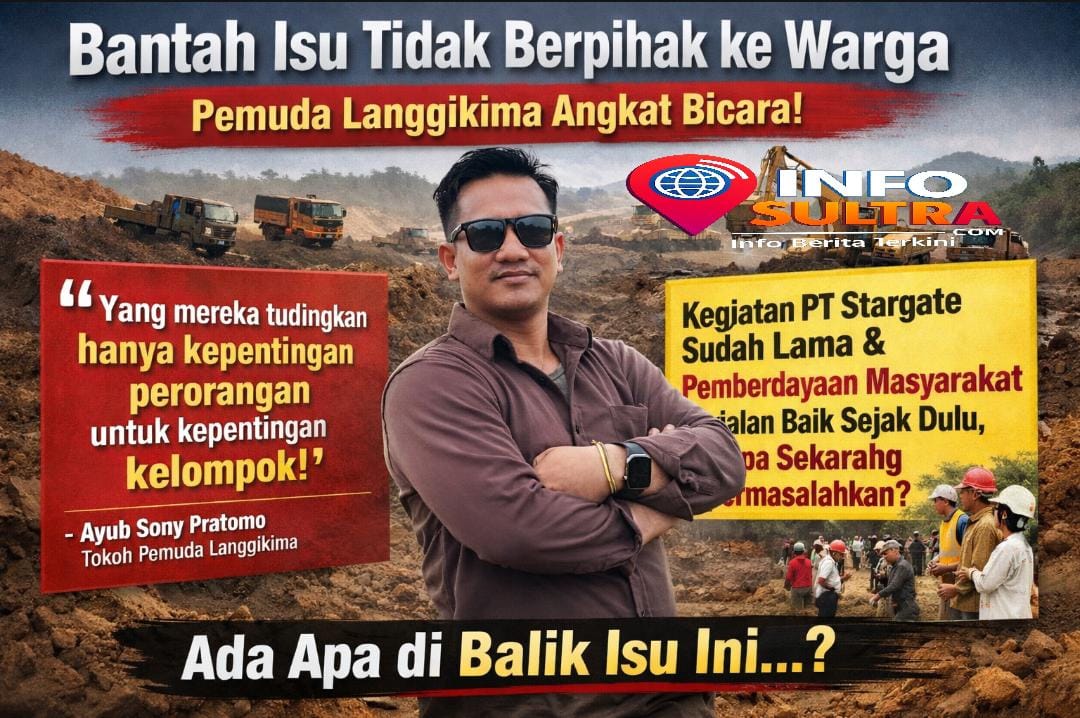 INFO-SULTRA.COM, KONAWE UTARA –Pemberitaan salah satu media online yang menuding PT Stargate tidak berpihak pada kesejahteraan masyarakat menuai bantahan keras dari warga setempat. Salah satunya disampaikan oleh Ayub Sony Pratomo, tokoh pemuda Kecamatan Langgikima, yang menilai pemberitaan tersebut tidak sesuai dengan fakta di lapangan dan cenderung sarat kepentingan tertentu.