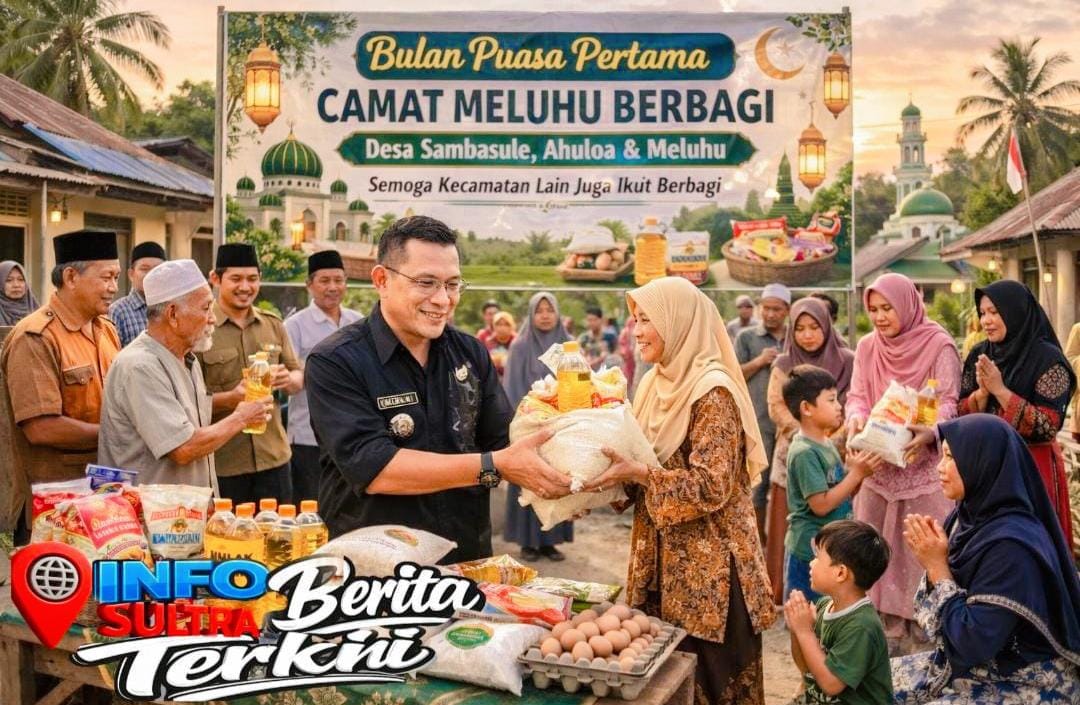 INFO-SULTRA.COM, KONAWE – Memasuki hari-hari pertama Ramadan 1447 Hijriah, Camat Meluhu, Miharudin Is Basatu, SKM, menggelar kegiatan berbagi sembako kepada masyarakat sekitar di wilayah Kecamatan Meluhu. Kegiatan ini menjadi wujud kepedulian dan kebersamaan di bulan suci yang penuh berkah.