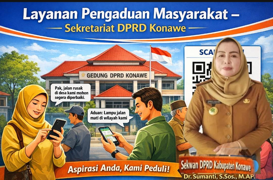Sekretaris DPRD Kabupaten Konawe, Dr. Sumanti, S.Sos., M.AP., mengatakan bahwa keberadaan layanan pengaduan masyarakat sangat penting untuk memperkuat komunikasi antara pemerintah daerah dan masyarakat.
