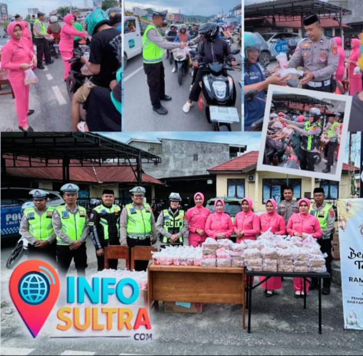 INFO-SULTRA.COM, KONAWE – Menjelang waktu berbuka puasa di bulan suci Ramadan, Satuan Lalu Lintas (Satlantas) Polres Konawe menggelar kegiatan sosial dengan membagikan takjil kepada masyarakat. Kegiatan tersebut dilaksanakan di Perempatan Pos Lantas Konawe pada Selasa (10/3/2026) mulai pukul 16.00 WITA.