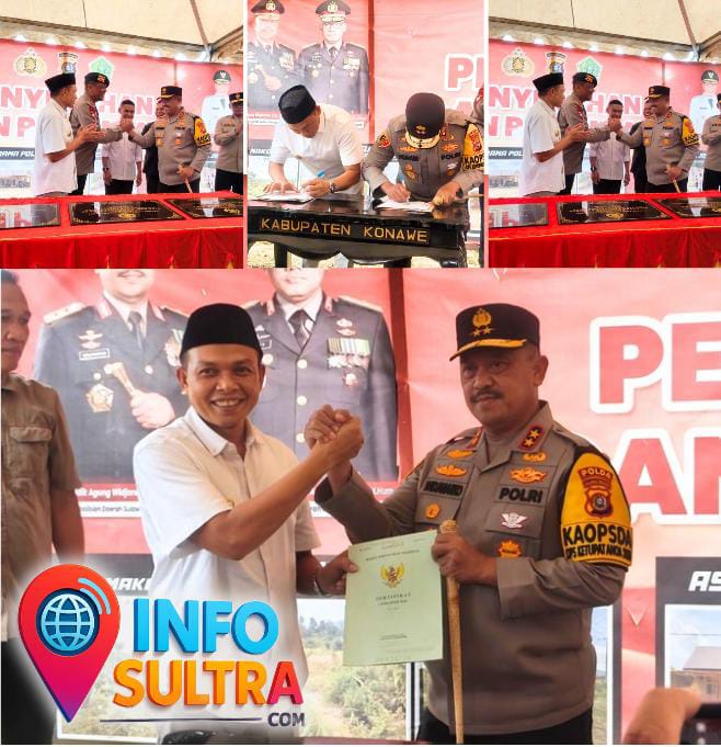 Dalam kesempatan tersebut, Kapolda Sultra didampingi Bupati Konawe melakukan penandatanganan prasasti pembangunan sekaligus penyerahan sertifikat pembangunan Mako Kompi Tiga Batalyon C Brimob Polda Sultra seluas 4 hektare, Asrama Polisi M. Jasin Polres Konawe, serta Lapangan Tembak Polres Konawe.