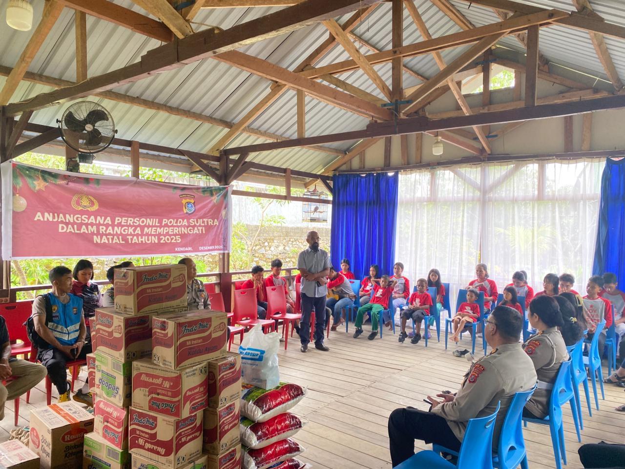 INFO-SULTRA.COM, KENDARI – Dalam rangka menyambut Perayaan Natal 25 Desember 2025, Kepolisian Daerah Sulawesi Tenggara (Polda Sultra) melaksanakan kegiatan bakti sosial berupa anjangsana ke tiga panti asuhan di wilayah Konawe dan Kota Kendari.